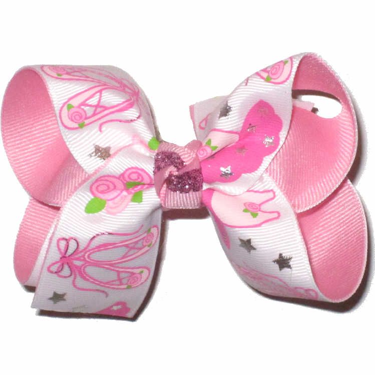Medium Pink Glitter over Pink Grosgrain with Ballet Slippers Miniature