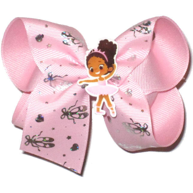 Large Black Glitter/Satin Ribbon over Pink Grosgrain with Ballet Slippers Minature