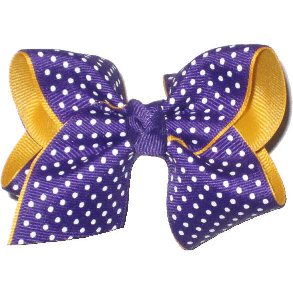 White with Large Purple and Yellow Gold Dots over White Grosgrain